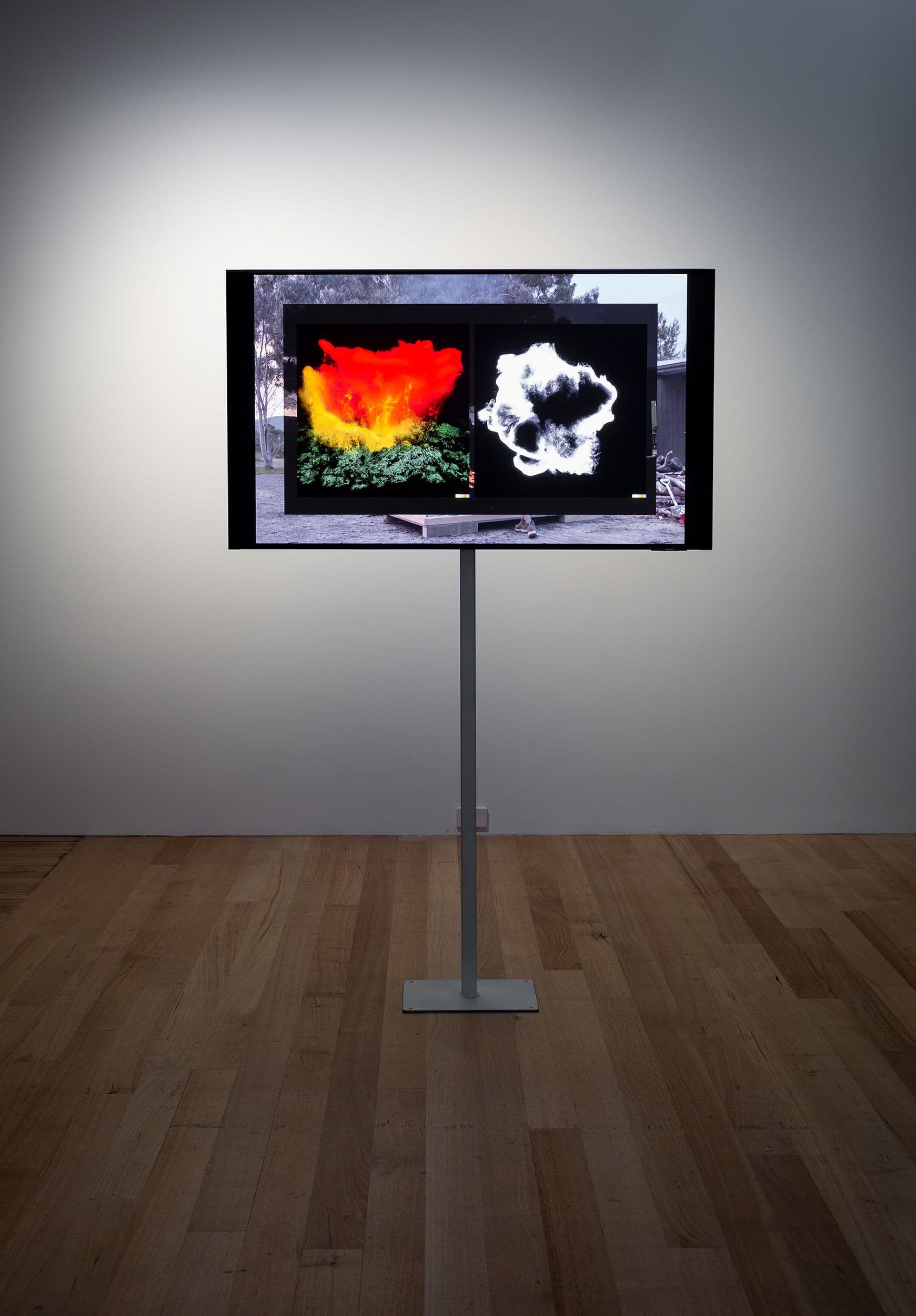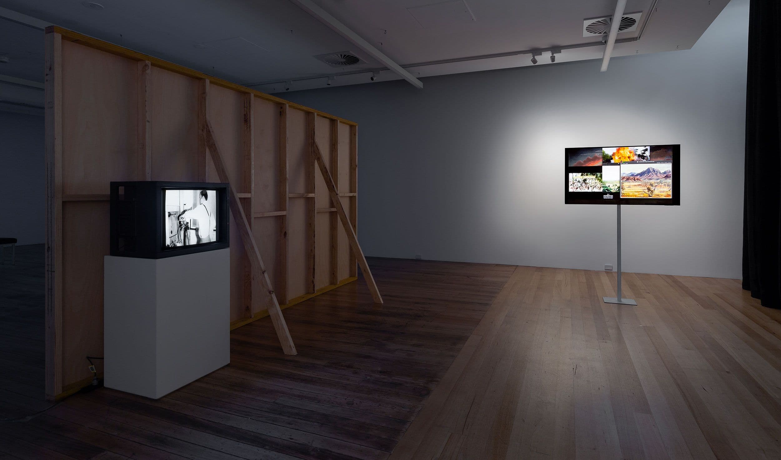 Echoing Schuppli’s interest in material witness and the pursuit of evidence for justice, Joel Sherwood Spring’s need more (2022) is a new work that continues the Wiradjuri anti-disciplinary practitioner’s recent engagement with the settler colonial built environment, the crucial centering of cultural fire of environmental rehabilitation, and the ecological aftermath of the Black Summer bushfires of 2019–20. This video functions as a concurrent work to Sherwood Spring’s untitled (winhangarra) 2022 project for the National Gallery of Australia. It also reflects the artist’s ongoing interest in video-based ‘essays’ that utilise screen-recording software to capture a choreographed succession of found images and footage that interrogate neocolonial structures of violence. Neocolonialism’s insistence in this country on fire-resisting structures instead of fire-accepting ones as Kevin O’Brien has argued elsewhere reflects one example of this persistent illogic in the face of the land’s natural bushfire cycles and climate change-fuelled megafires. Instead, O’Brien’s propositional response to this is a different interpretation of an impermanent shelter: a future architecture that privileges camping and transience over bricks and mortar. need more’s centring in the space functions as a vital and critical counterpoint to the utopian aspirations that course through Klein’s idealistic practice, Biosphere 2’s techno-futurist mission, and the dispersed, aerial asbestosis violence caused by extractivism. An imperial methodology of man over nature clearly persists. But as the sulphur-crested cockatoo seen briefly in Sherwood Spring’s work evidences as it rips rows of bird spikes from an apartment block’s windowsill and throws them to street level, even seemingly permanent structures can be undone.