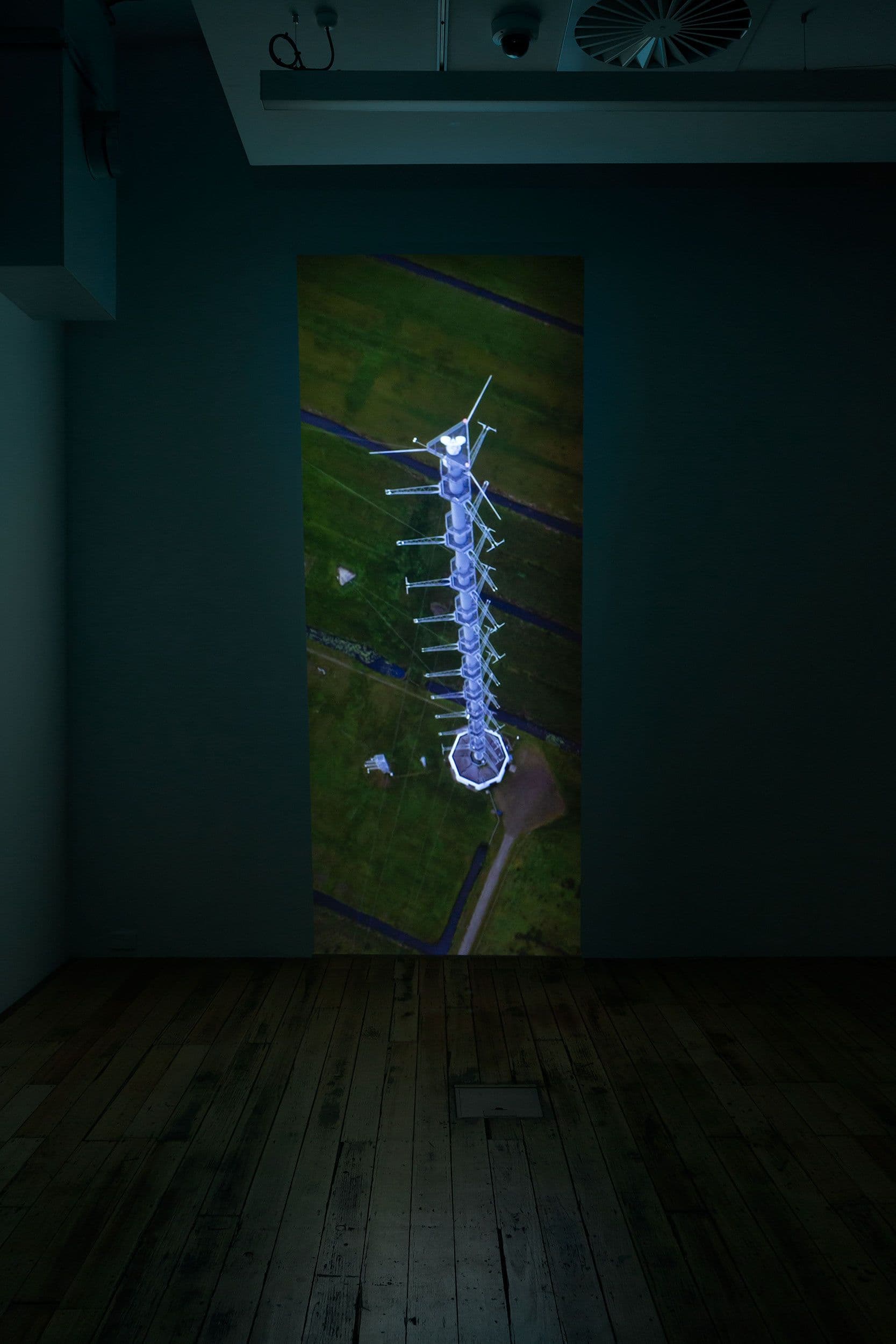 The structure depicted in Susan Schuppli’s Atmospheric Feedback Loops (2017) is no shelter, but its scientific mission offers the promise of comprehending threats against the future certainty of Earth as a shelter for humanity. The towering “high measurement mast”, adjoining structures and devices that feature in the vertical film constitute the Cabauw Experimental Site for Atmospheric Research, established in 1970 in the Dutch rural countryside an hour outside of Amsterdam. At Cabauw, scientists study the interactions between atmospheric phenomena and terrestrial events, separating the evidence of climate change from the inherent cyclical variations of the planet. Here, climate science and visual culture intersect in a generative way. In the 17th century this region played host to artists such as Jacob van Ruisdael (1628/9–1682), renowned for his landscapes’ emulation of the particular quality of light, Hollands licht, that the country was once known for. Joseph Beuys, as Schuppli’s video’s narrator describes, theorised that the Dutch land reclamation movements of the mid 20th century had impacted this light’s existence dramatically. Human interference displaced it and “the air was said to have lost its refractive shimmer”. By comparing Cabauw’s readings with van Ruisdael’s landscapes, art is utilised as Schuppli has discussed separately as a form of “proxy data” allowing new insights into the impact of global warming and hinting at the possibility of climate justice on behalf of the Planet.